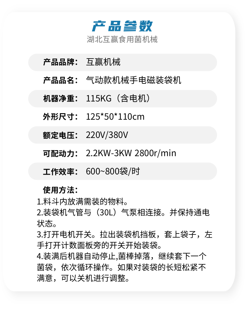 近年來代料香菇裝袋機的發(fā)展,越來越迅猛。其規(guī)模不斷擴大,品種不斷增多,地域限制越來越少。是農(nóng)民增收的可靠保障,也是地方政府的經(jīng)濟支柱。自動套袋食用菌裝袋機廣泛用在香菇、木耳、平菇、金針菇、茯苓、灰樹花、姬菇、秀珍菇等食用菌種植領域。是工廠、基地、合作社、家庭農(nóng)場理想的工廠化生產(chǎn)機械。生產(chǎn)規(guī)模的大小可根據(jù)資金、銷售量、經(jīng)營方式、技術力量、資源條件等綜合因素來確定,可用單機,也可組合設計成半機械化...